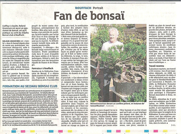 Je suis membre du SEIJAKU-BONSAI-CLUB-ROUFFACH, où je partage mes connaissances avec mes amis en tant que formateur.